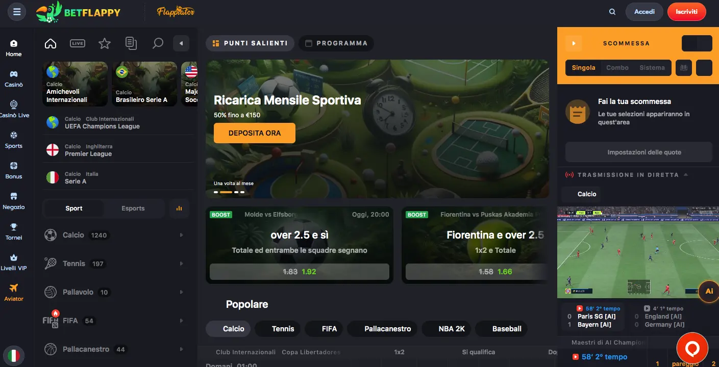 Siamo entusiasti di presentarvi la nostra dettagliata recensione di Flappy Casino, uno degli operatori più apprezzati nel panorama del gioco online. Flappy Casino unisce giochi tradizionali a funzionalità innovative che possono catturare anche i giocatori più esperti. In questo articolo esploreremo i vari aspetti distintivi di Flappy Casino, dalla facilità d'uso della piattaforma agli imperdibili bonus, dalle misure di sicurezza all'ampia varietà di giochi disponibili. Che si tratti di slot, poker o roulette, Flappy Casino promette un'avventura di gioco entusiasmante, comodamente da casa vostra.